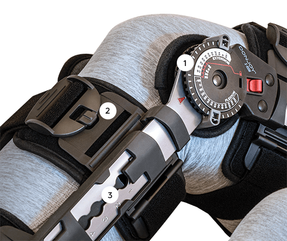 • Immobilizzazione con controllo dell'arco di movimento (ROM) a seguito di interventi chirurgici ai legamenti LCA, LCP, LCL, LCM, interventi di riparazione del menisco, frattura del piatto tibiale, severa distorsione al ginocchio, ricostruzione della cartilagine, post-osteotomia