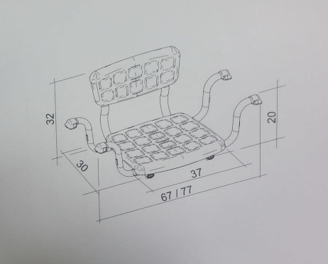 • Larghezza totale appoggi da 67 a 77 cm