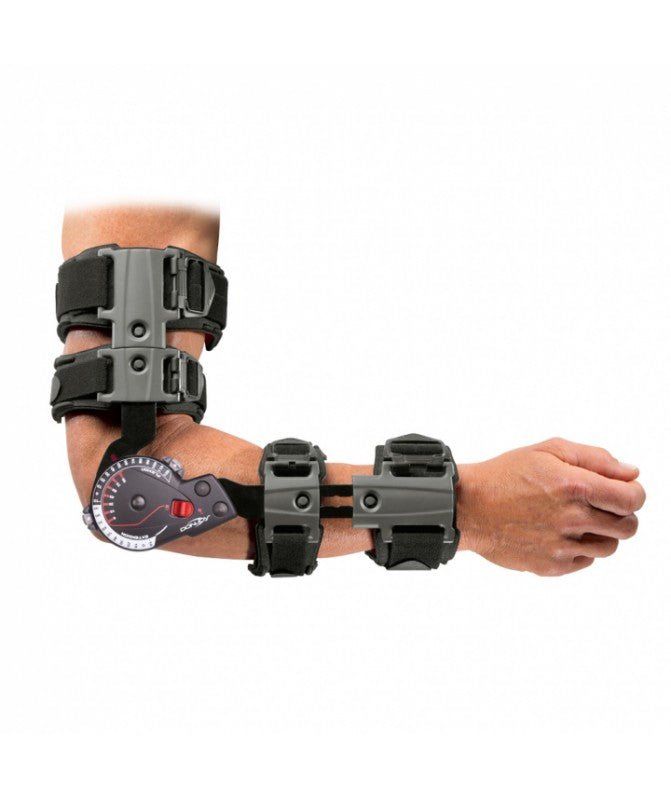 Il tutore per gomito X-Act ROM leggero, telescopico leggero e facile da applicare ha la possibilità di applicare un range articolare fisso o protetta per migliorare i risultati del paziente.
